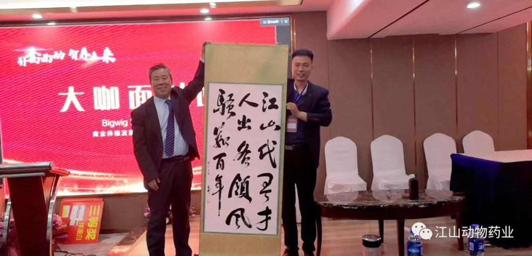 沙龍會(huì)議結(jié)束后,江山金牌優(yōu)秀伙伴、磁州動(dòng)物醫(yī)院院長(zhǎng)、磁縣書法家協(xié)會(huì)副會(huì)長(zhǎng)陳志彬先生現(xiàn)場(chǎng)為江山藥業(yè)題字。